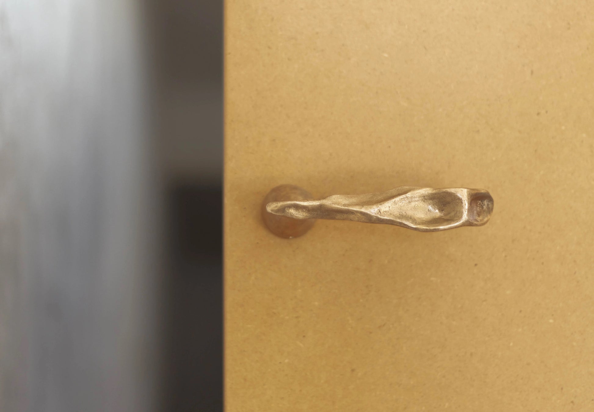 Inspirert av den menneskelige berøringen stimulerer de myke formene og teksturerte overflatene til Pinch-kolleksjonen forsiktig sansene våre. Tender Pinch-dørspaken er et veldig spesielt håndtak: det er en skulptur laget av en solid blokk av messing eller bronse, designet uten rosett.